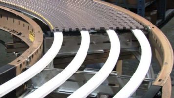 Rexnord recognizes the importance of opportunities to easily and economically convert from existing technology in skid applications and has developed the 3180 Series MatTop Chain. These chains are suitable for 3.2 inch (81mm) skid conveyors, allowing the skids to be aligned mechanically before transferring to the next conveyor.