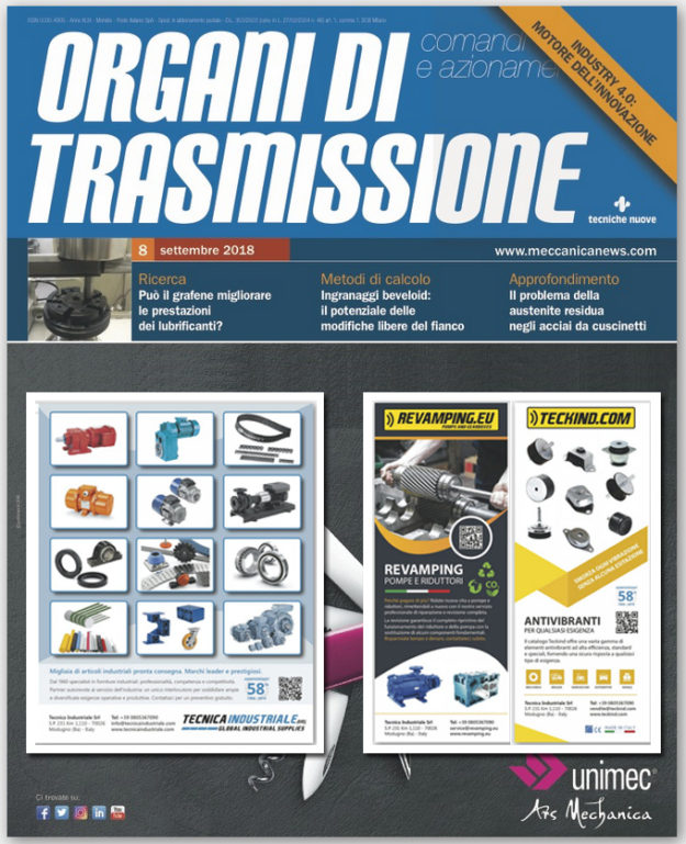 Starting from September 2018, Tecnica Industriale sponsors three pages of the prestigious monthly magazine Organi di Trasmissione.