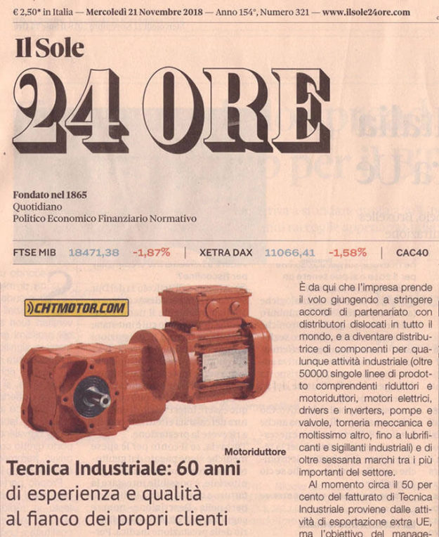 Today 21 November 2018, Tecnica Industriale Srl is proud to have obtained a prestigious editorial on its activities on the national italian newspaper Il Sole 24 Ore.