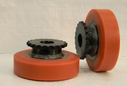Made with steel hub and Vulkotech 97sha coating. Movement via chain. Operating temperature between -20 and +80 ° c. Ideal for shuttle trolleys