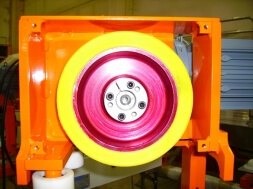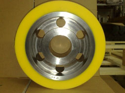 Made with steel / cast iron hub and vulkollan bayer 92sha / vulkotech 92sha coating. For the sizing and calculation of the structure and the coating of the wheels, it is necessary to take into account the capacity (load to be handled + trolley weight), working speed (m / sec), accelerations, decelerations, braking, load distribution (on axis or cantilever) ), daily working hours and operating temperature (° C) For these particular applications the wheels are made according to the customer’s design, who can avail himself of the consultancy of our Technical Service for the design.