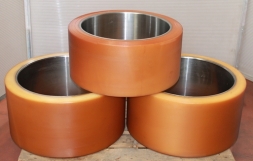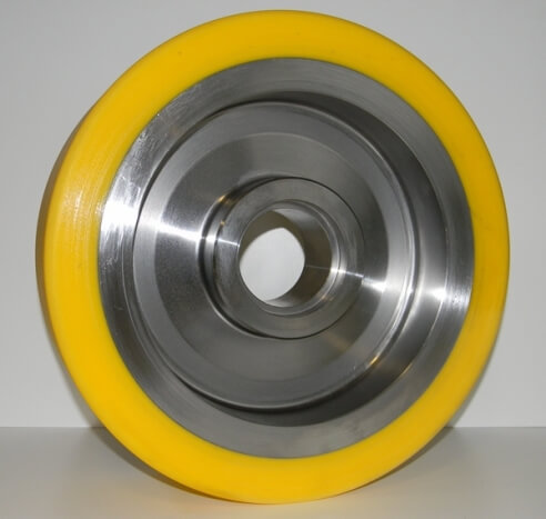 Made with steel / cast iron hub and vulkollan bayer 92sha / vulkotech 92sha coating. For the sizing and calculation of the structure and the coating of the wheels, it is necessary to take into account the capacity (load to be handled + trolley weight), working speed (m / sec), accelerations, decelerations, braking, load distribution (on axis or cantilever) ), daily working hours and operating temperature (° c) for these particular applications the wheels are made according to the customer’s design, who can use our technical service for the design.