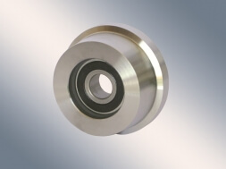 Round groove wheel in special steel for high capacities. Excellent smoothness, low thrust force. Made in the neutral version or with ball bearings.