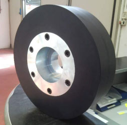 Electro-welded steel ring and vulkollan bayer 92sha coating available in sizes on request. Ideal for systems subjected to continuous and stressful workloads. The ring facilitates the replacement of the coating during maintenance.
