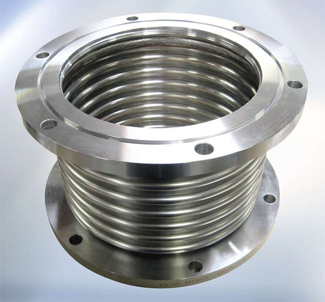 Metal expansion joints are flexible connections, installed in piping and ducting systems to accommodate expansion and vibration caused by changes in temperature, pressure and/or media. Metal bellows are made of one or multiple plies of stainless steel in austenitic steel, Incoloys, Inconels or other formable materials. Metal expansion joints can be designed with hardware, intended to retain system pressure thrust load, while allowing intended design movement.
