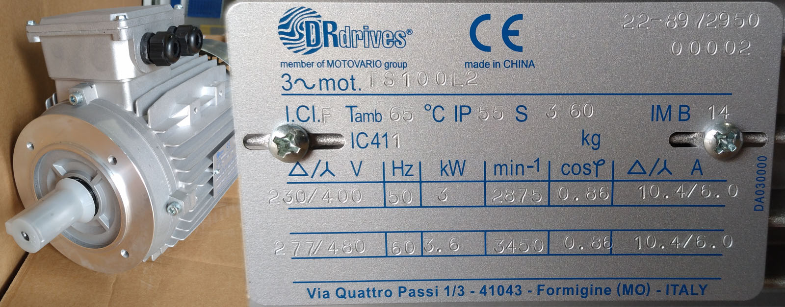 | CHTA100LA2B5-IE1 | MOTOVARIO | HP4 2P KW3 B5 230 / 400 / 50HZ | 40 | € 92,00 | ASK FOR A QUOTE | |