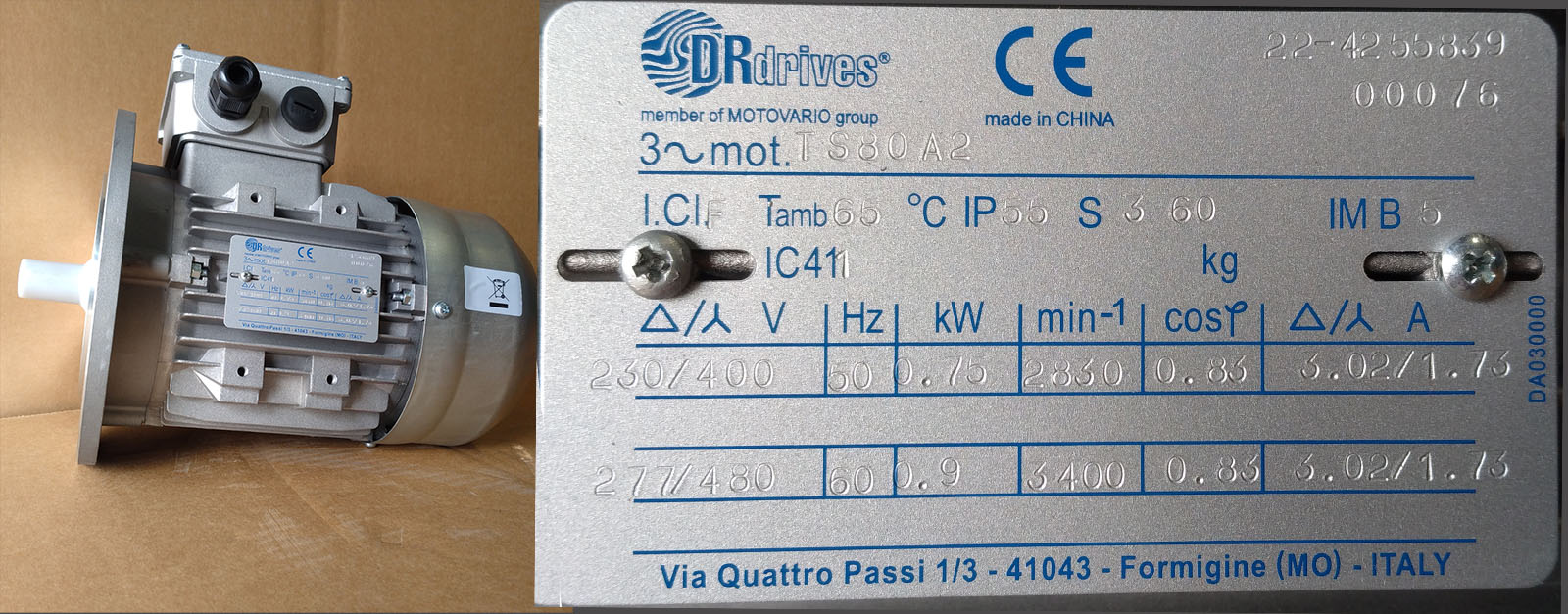 | CHTA80A2B5-IE1 | MOTOVARIO | HP1 2P KW0,75 B5 230 / 400 / 50HZ | 70 | € 39,50 | ASK FOR A QUOTE | |
