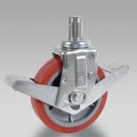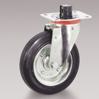 All wheels normally require the use of a bracket to be fitted to a trolley; the wheels which have an axis integrated in the trolley itself are an exception. Swivel bracket: turns on its own vertical axis as the direction of movement changes; it can be swivel with top plate, swivel with bolt hole, swivel with stem. It can be fitted with a lock. Fixed bracket: it cannot rotate; it has the task of maintaining the wheel along a guideline.